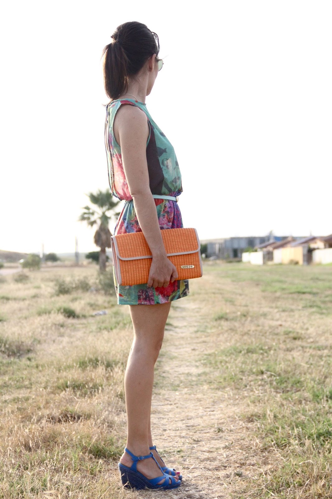 Con color con mucho color es el look que os traigo hoy, ya os enseñé el vestido el verano pasado pero con complementos totalmente diferentes, me encanta y siempre recurro a el cuando quiero ir cómoda y con complementos alegres ya que con tanto colorido permite combinarlo con cualquier color. Además la abertura que tiene en la espalda lo hace diferente. Ayer hicimos las fotos a la vuelta de hacer varios recados y como véis nos cogió el atardecer, no se a vosotras pero me encanta verlo. Los zapatos ya sabéis que están en auge de nuevo las espartos, estas cuñas de XTI son del corte de las de toda la vida, comodidad 100%, es bueno que recuperemos algunas cosas del pasado.