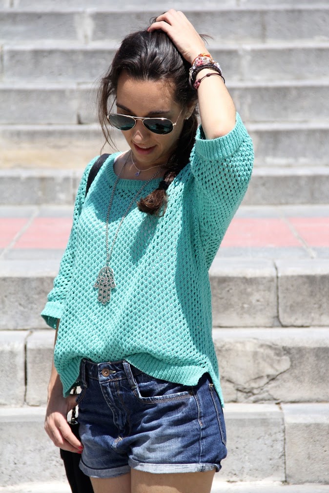 abril 25, 2013 at 21:30Bienvenido los shorts, me encanta el color del jersey, tienes una mano de Fátima! Que bonita