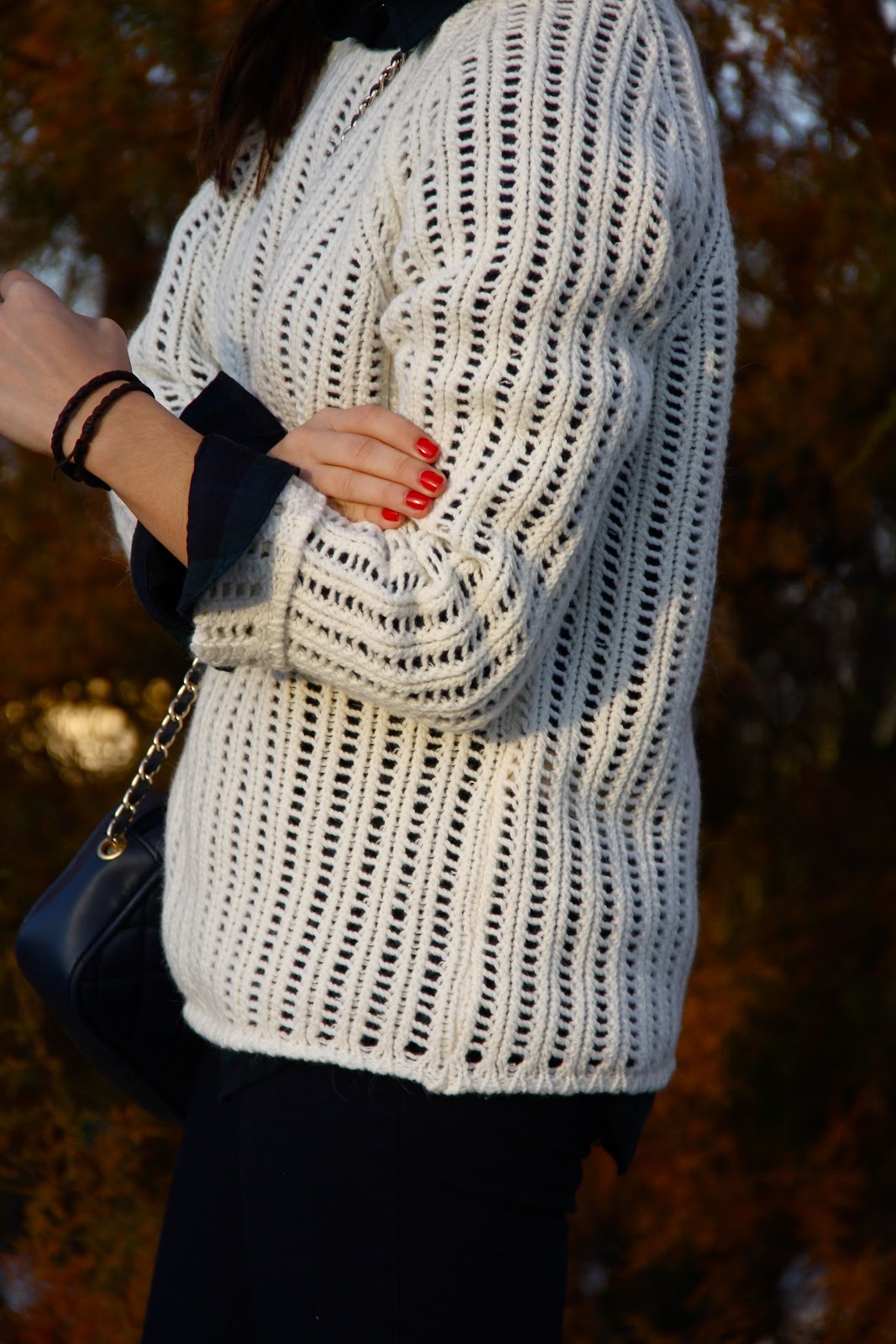 El jersey es muy bonito y el bolso también (a mi también me gusta llevarlos cruzados porque, así, no se me carga tanto la espalda).